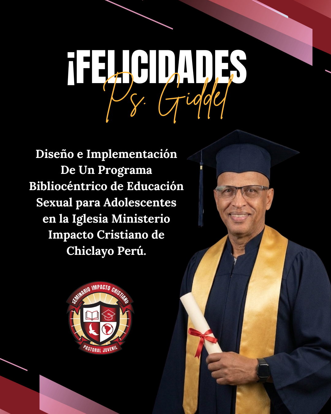 Estoy muy agradecido con Dios, porque me ha permite ser parte del Seminario Impacto Cristiano. Ha cambiado mi vida y mi manera de pensar de cómo llegar a la vida de nuestra juventud que se pierde día tras día sin Cristo. El Seminario Impacto Cristiano no es una simple clase si no un estilo de vida de cómo atender las necesidades de nuestro jóvenes que muchas veces no son atendidas en nuestras iglesias. Muchas gracias a nuestra docente Fe por compartirnos las herramientas necesarias para estar preparados para esta batalla en un ciclo de hipermodernidad.